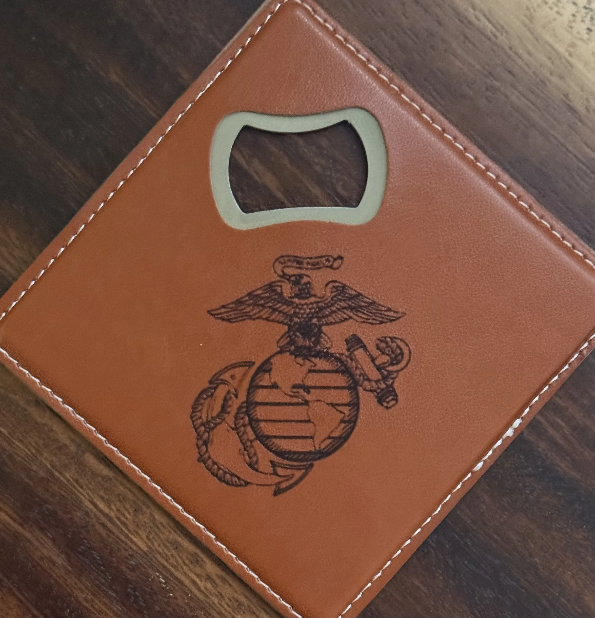 Crack a cold one with this bottle opener and coaster. Custom made to you request.